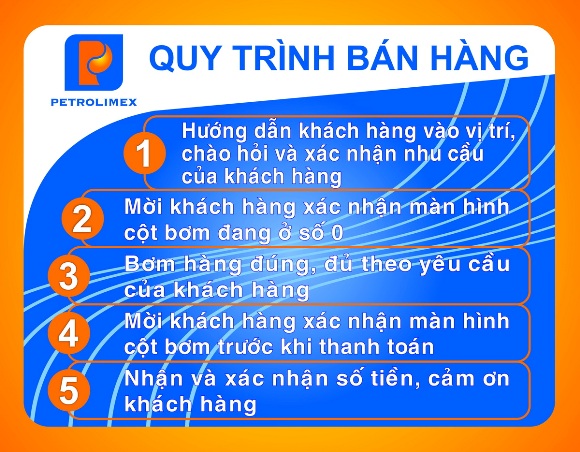 Từ ngày 01/8/2017, Quy trình bán hàng 5 bước sẽ được chính thức vận hành trên hệ thống các cửa hàng xăng Petrolimex tại thành phố Cần Thơ và các tỉnh Sóc Trăng, Bạc Liêu, Hậu Giang